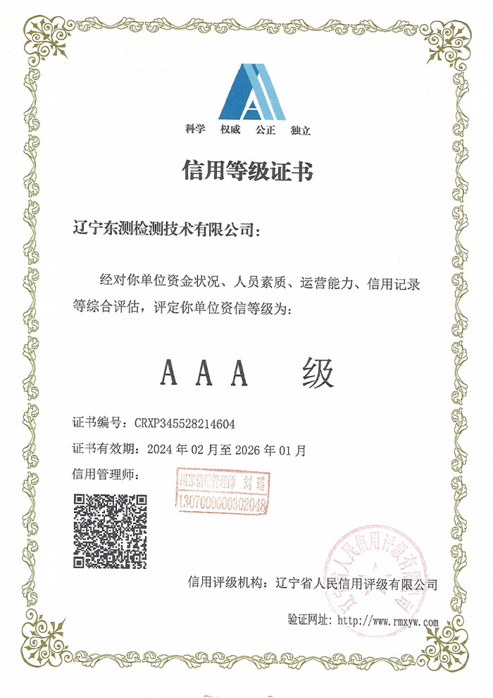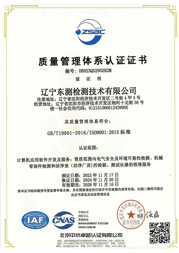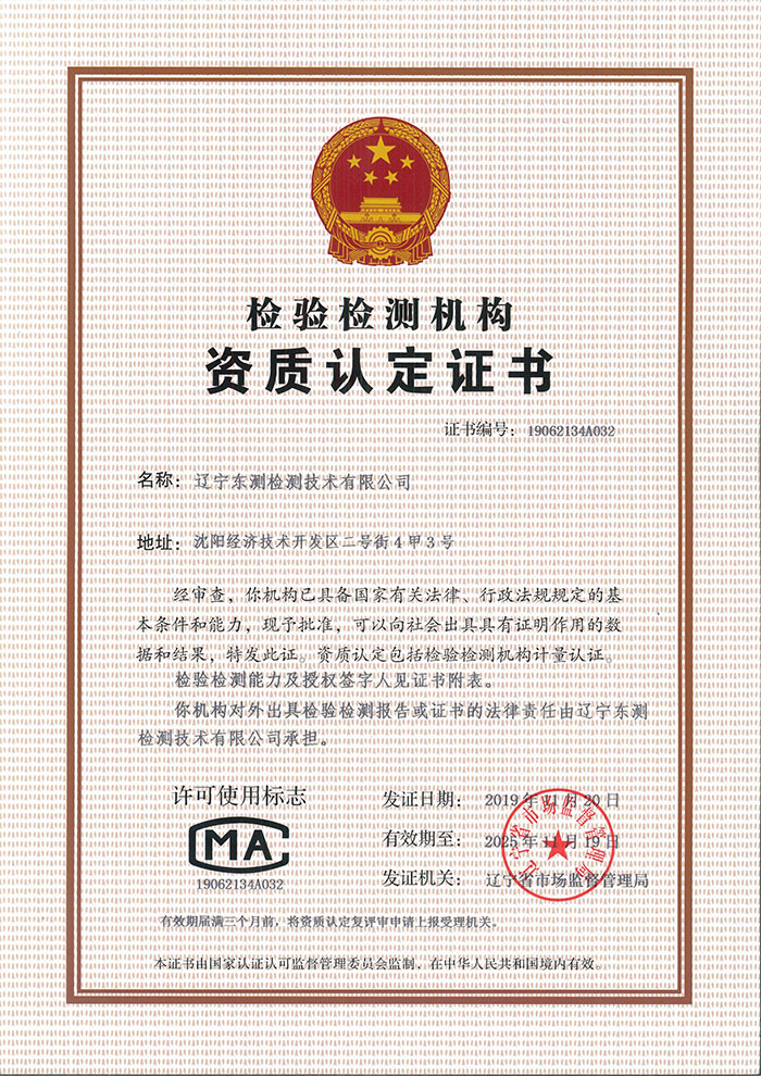 遼寧東測檢測技術有限公司成立于2007年6月21日,專注于為客戶提供計量、檢測以及技術咨詢與培訓的第三方計量檢測機構。遼寧東測檢測技術有限公司通過了中國合格評定國家認可委員會認可(CNAS),獲得檢驗檢測機構資質(zhì)認定(CMA),憑借著高效的服務網(wǎng)絡、雄厚的技術實力以及全面的業(yè)務范圍,本著“科學、公正、準確、真誠”的質(zhì)量方針,為社會提供優(yōu)質(zhì)計量檢測服務,打造國內(nèi)具有價值的計量技術機構。